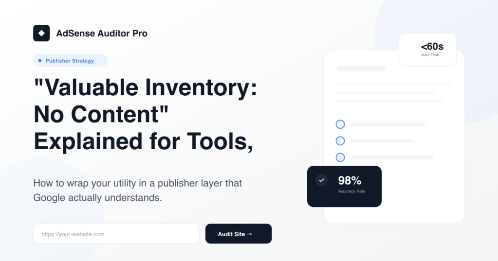 AdSense is a partnership between a publisher and an advertiser. To be a partner, you must first prove that you are a publisher, not just a script host. Wrap your utility in editorial context, and the “Valuable Inventory” rejections will disappear.